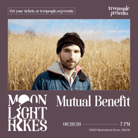 Grab your hiking boots and join us on the trails for a Moonlight Hike at TreePeople! For our first Moonlight Hike of the summer season we’re so very grateful to sit with with our nearest and dearest Jordan Lee of Mutual Benefit as he shares a selection of very new music with us. We’re deep lovers of every tape and record that’s come from Mutual Benefit and are always so excited to hear what Jordan has been working on. This is his only performance in town, and if you’re not able to share the evening with us, we really hope that he comes back to visit us soon. Bring a blanket, pour some tea, and bliss in. Music begins at 7pm with the hike following at 8pm. Tell your friends, bring your family, and join us for another magical evening of music, hikes, and learning about nature.