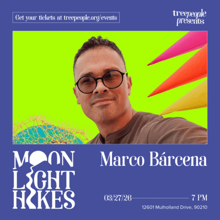 Grab your hiking boots and join us on the trails for a Moonlight Hike at TreePeople! For our first moonlight hike of the spring, we’re trying something very new and exciting… our first ever quadraphonic performance. Marco Bárcena, current councilmember and former Mayor of Bell Gardens, will be joining us in the round for an immersive and improvisatory quad performance for synthesizer. Maybe you’ve seen his surprise cameo in a differentchairs video that went viral, seen him at the skatepark, marched against ICE with him, or been to one of his many outdoor concerts in Ford Parkd. Bring a blanket, pour some tea, and bliss in. Music begins at 7pm with the hike following at 8pm. Tell your friends, bring your family, and join us for another magical evening of music, hikes, and learning about nature.
