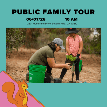 Get your family and friends out of the house and onto the trails for a special tour at TreePeople’s Coldwater Canyon Park! The Family Tour is a modified version of our award winning Eco-Tour. Join us for a guided 1.5 hour adventure where we will walk along the trails, learn to identify plants native to Southern California, plant a seedling, and tour the Urban Watershed Garden for a live demonstration of how rainwater flows through our urban environment. And who knows? You may run into the Dirt Doctor, our on-site professional specializing in the magic of mulch medicine. We invite you to bring your lunch and enjoy a picnic in the park after the tour!