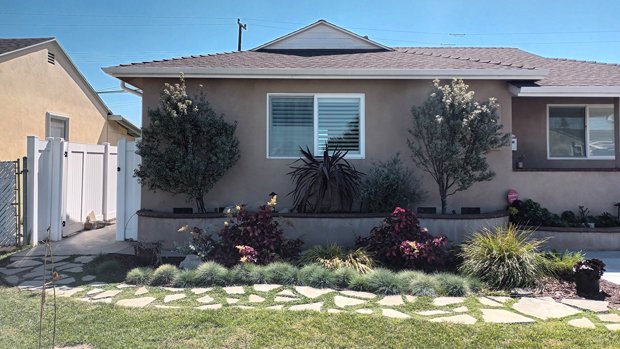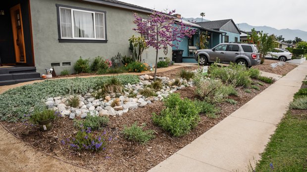 The Altadena Neighborhood Retrofits Project, which kicked off in 2021 and was completed in 2023, was a partnership with Los Angeles County Department of Public Works and installed 20 parkway basins and retrofitted 20 home landscapes in the neighborhood of Altadena. TreePeople led outreach, hands-on maintenance workshops, and designed and installed the landscapes. The retrofits aimed to reduce runoff, conserve water, and increase biodiversity through strategies inclufding turf removal, native plantings, stormwater basins and cisterns, and greywater systems.