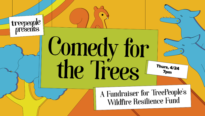 Come Laugh with Us! Join TreePeople for an evening of laughs with comedians Nick Rutherford, Reggie Watts, Kurt Braunohler, and more! These comedians will be helping us raise money for TreePeople’s Wildfire Resilience Fund. Big laughs for a big impact!
