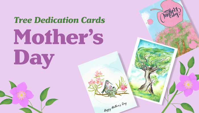 The Perfect Mother’s Day Gift Tree Dedication Cards are the perfect way to let mom know you care about her and the environment. Choose from one of our new Mother’s Day cards or our classic faves! Physical cards take longer to deliver (try to give it at least ten days). But if you need one last minute, we have you covered with our digital tree dedication cards (and they save paper!). Order today! |